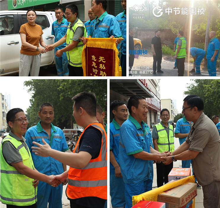搶險突擊隊排水作業(yè)點所在社區(qū)和附近居民為搶險突擊隊送水、送飯、送錦旗,夾道歡送搶險突擊隊轉(zhuǎn)移作業(yè)地點,特別感謝中節(jié)能國禎搶險突擊隊辛勤勞動和無私奉獻,紛紛為搶險突擊隊的綜合素質(zhì)、工作態(tài)度和能力點贊。