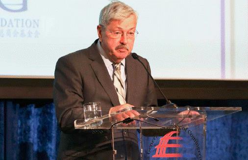 美國駐華大使Terry Branstad在招待會(huì)上發(fā)表講話